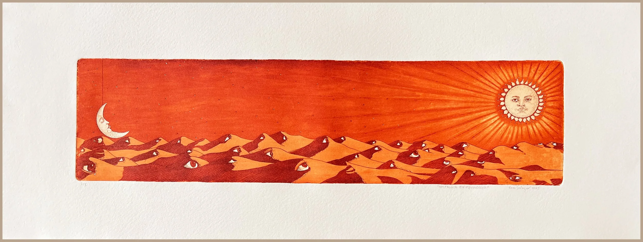 “nostalgia en equinoccio” grabado en aguafuerte y aguatinta sobre papel algodón / 53 x 20 cms. / serie de 5